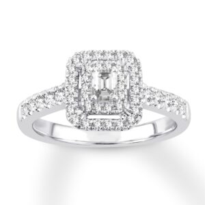 Diamond Engagement Ring 1/2 ct tw Emerald/Round 14K White Gold