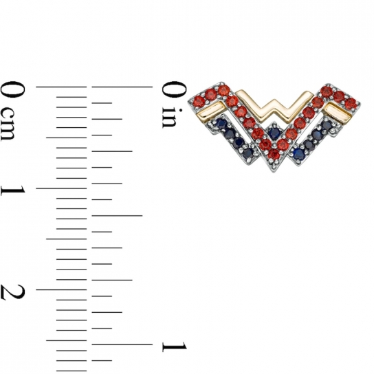 With stunning color, these distinctive gemstone stud earringsdeliver valiant design. Fashioned in sterling silver and warm 10K gold, each dynamic earring showcases the logo in eye-catching silver rows of regal red garnets and bright blue sapphires. A sculpted ribbon in polished yellow gold completes this classic symbol. Buffed to a brilliant luster, these post earrings secure comfortably with friction backs. This exclusive fine jewelry collection inspires you to wear your strength, confidence and power.